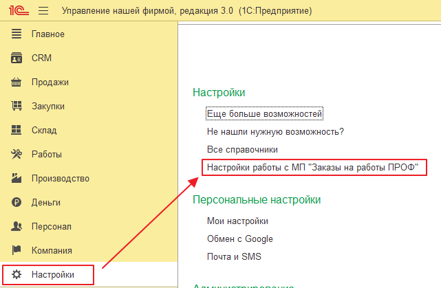 После перезапуска 1С зайдите в настройки (Настройка – Настройка работы с МП «Планизатор») и отметьте требуемую для работы функциональность: