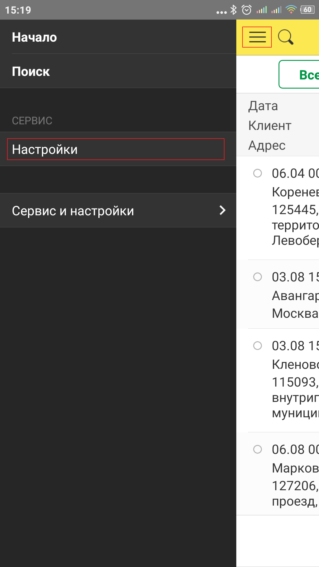 посмотреть адрес Заказчика на карте и построить маршрут, нажав на поле Адрес