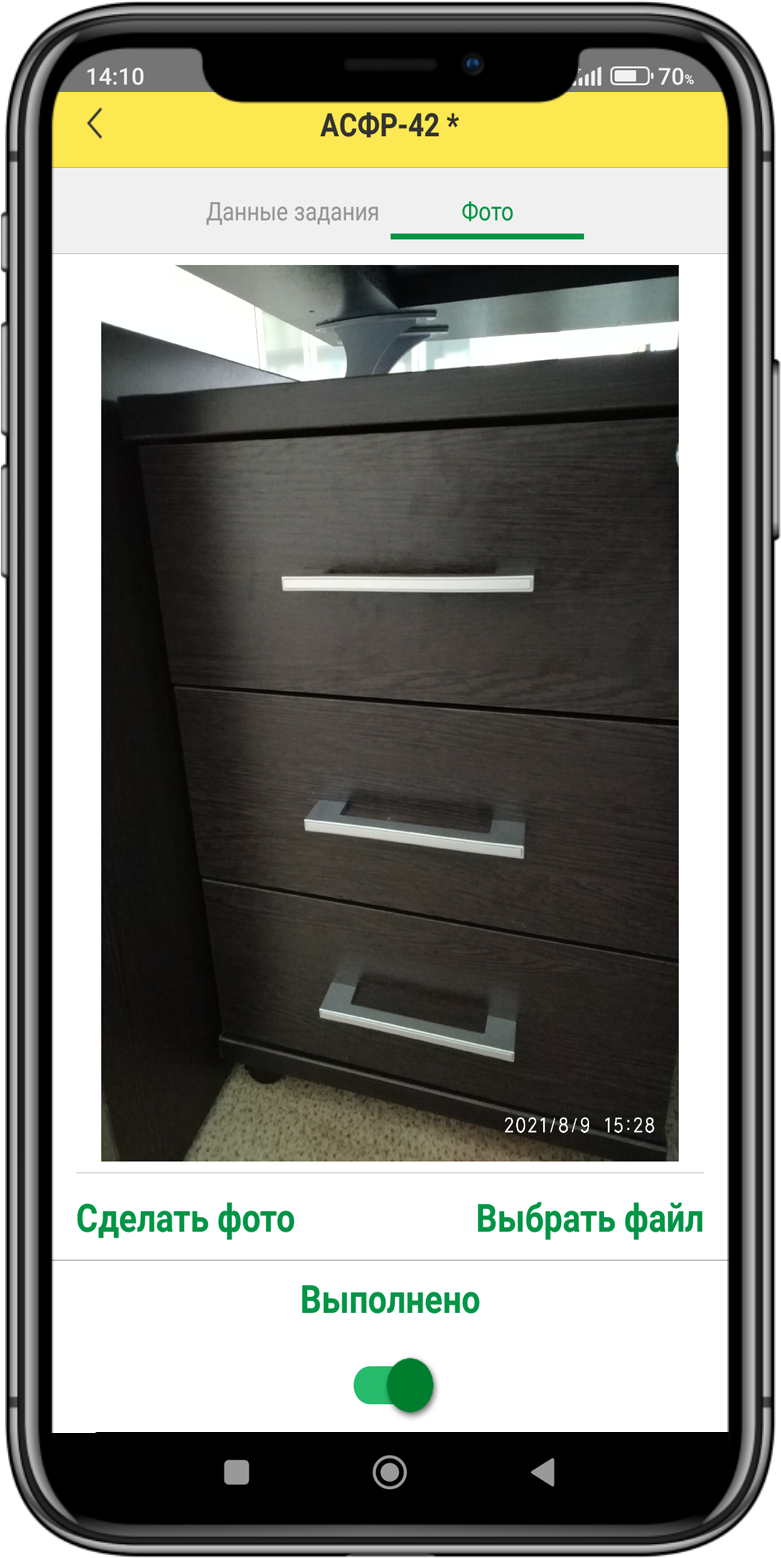 По окончании работ исполнитель может сделать фотографии объекта прямо из приложения.