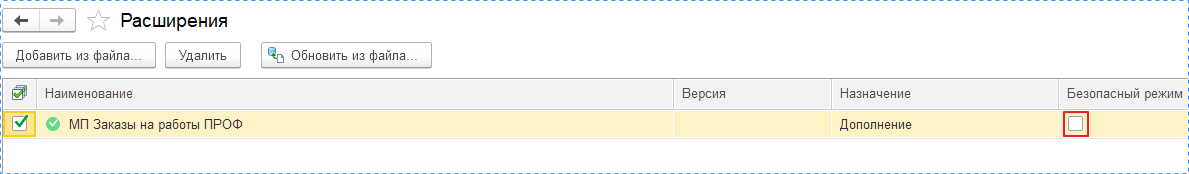 После добавления расширения и отключения безопасного режима потребуется перезапуск 1С. После перезапуска ваша база готова к работе!